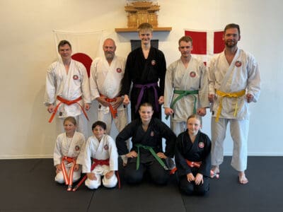 Det blev til to nye grønbælter og en lillabælte på højbælteholdet, og så fik et af børnene det røde bælte. Så alt i alt en bundsolid graduering.